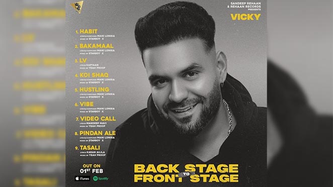 The announcement we all had been waiting for, is finally here. Punjabi singer Vicky has finally unveiled the tracklist of his much-awaited album ‘Back Stage To Front Stage’. The album was announced through social media by Vicky himself, about 2 months ago. The tracklist and the release date has also been announced by his official social media handle.